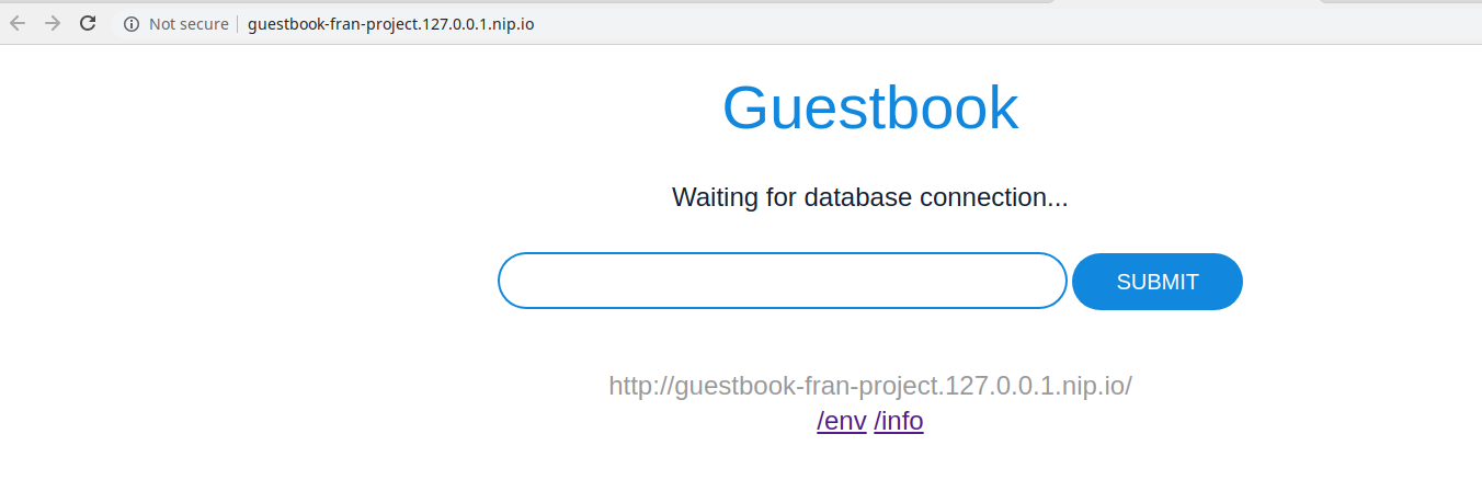 5) Go to http://guestbook-fran-project.127.0.0.1.nip.io